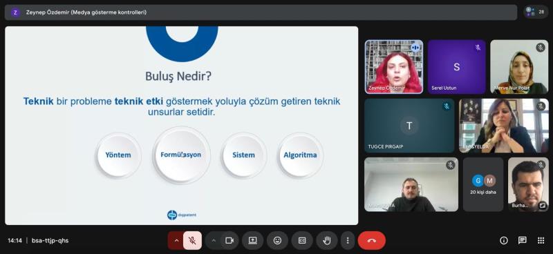 Moderatörlüğünü Öğr. Gör. Merve Nur POLAT’ın üstlendiği eğitimde; Dışpatent Marka Tescil ve Danışmanlık Hizmetlerinden Patent Uzmanı ve Moleküler Biyolog Sn. Zeynep KARAKÖY, patent başvuru süreçleri, buluşların korunması ve sınai mülkiyet hakları konularında kapsamlı bir sunum yaptı.